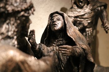 Figury, będące miniaturą tych z jasnogórskich wałów, wykonał artysta i rzeźbiarz węgierski Varga Gabor. - Te wyjątkowe figury ukazują mękę, śmierć Chrystusa, a gdy przypatrzymy się uważniej, możemy także dostrzec wizerunek właśnie św. Jana Pawła II, który pomaga dźwigać Jezusowi krzyż - zwracała uwagę s. Anna Rogodzińska.