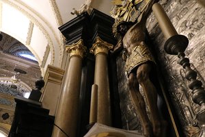 Rzeźba konającego na krzyżu Chrystusa jest znana z wielu cudów i uzdrowień. Przy słynącym szczególnymi łaskami ołtarzu z krzyżem i figurą Jezusa Ukrzyżowanego Msza św. odprawiana jest tylko sześć razy w roku - w pięć piątków Wielkiego Postu i czternastego września - w święto Podwyższenia Krzyża Świętego.